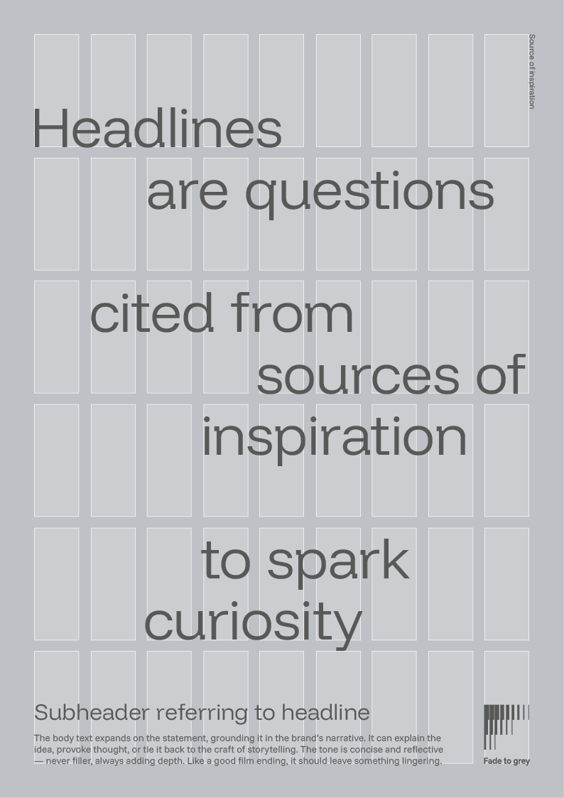 Fade to Grey is a film production company with storytelling at its core. When they reached out, they had a name – and not much else. I developed a full brand identity to help position Fade to Grey not just as a production company, but as storytellers.